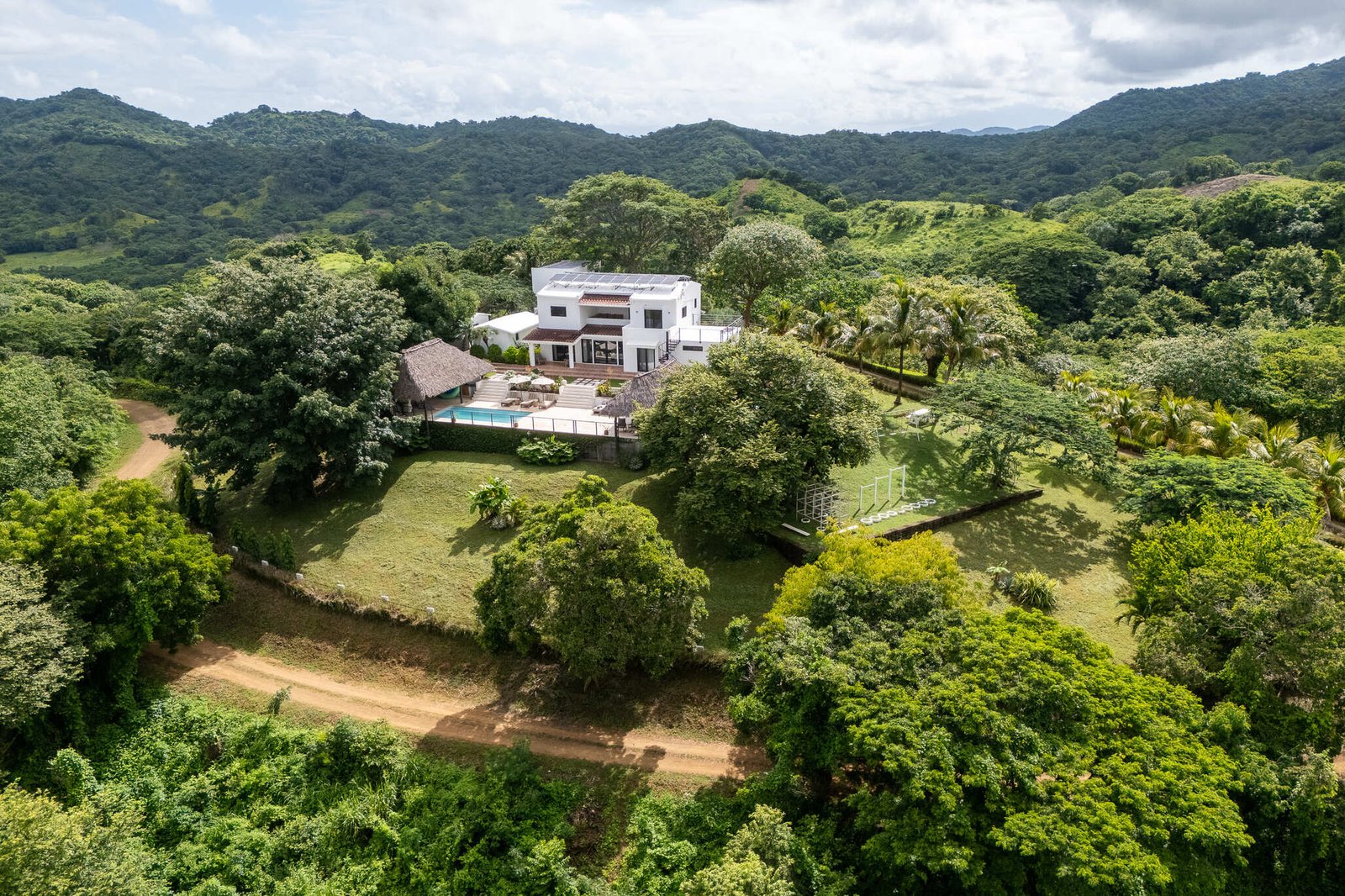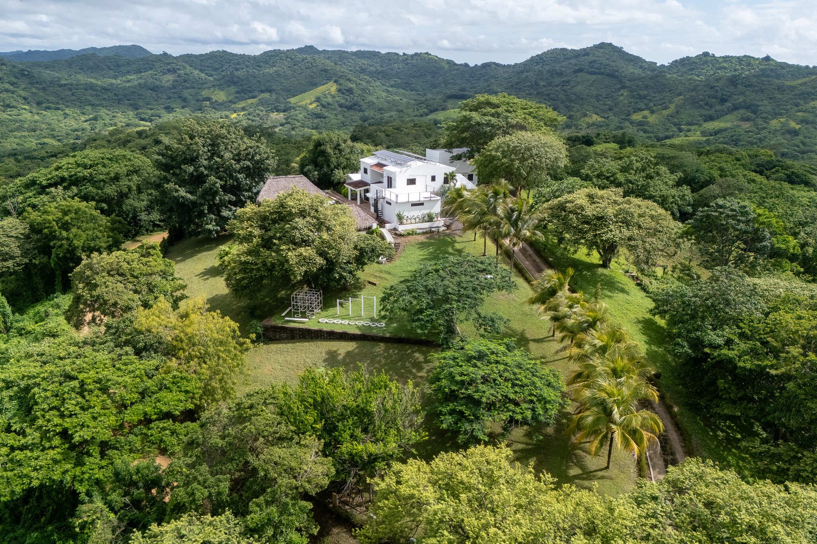 this exceptional 9-acre oceanview retreat in San Juan del Sur offers a rare blend of luxury, privacy, and investment potential just 15 minutes from town. The modern 4-bedroom, 4-bathroom home sits on an elevated hilltop with breathtaking 360° views stretching from the Pacific Ocean to the volcanoes of Ometepe. Designed for comfort and style, it features a bright open layout, gourmet kitchen with handcrafted finishes, and a spacious primary suite with spa-like bathroom, walk-in closet, and direct pool access. Upstairs, two en-suite bedrooms with AC and a covered balcony provide privacy, while a library nook with guest bed adds flexibility.