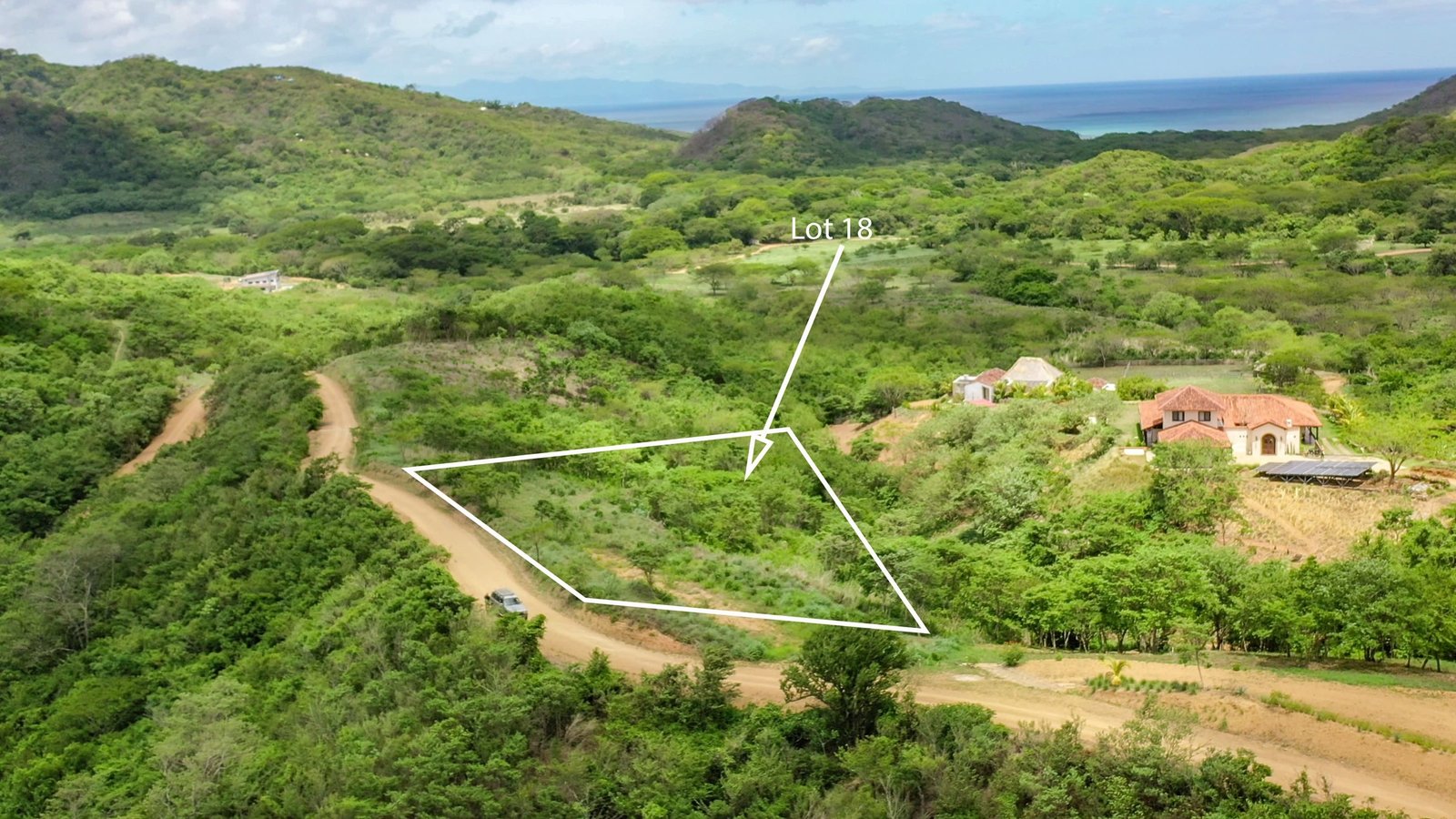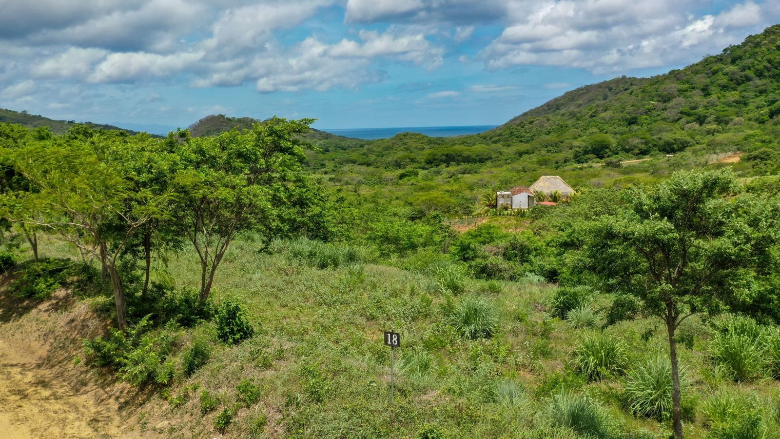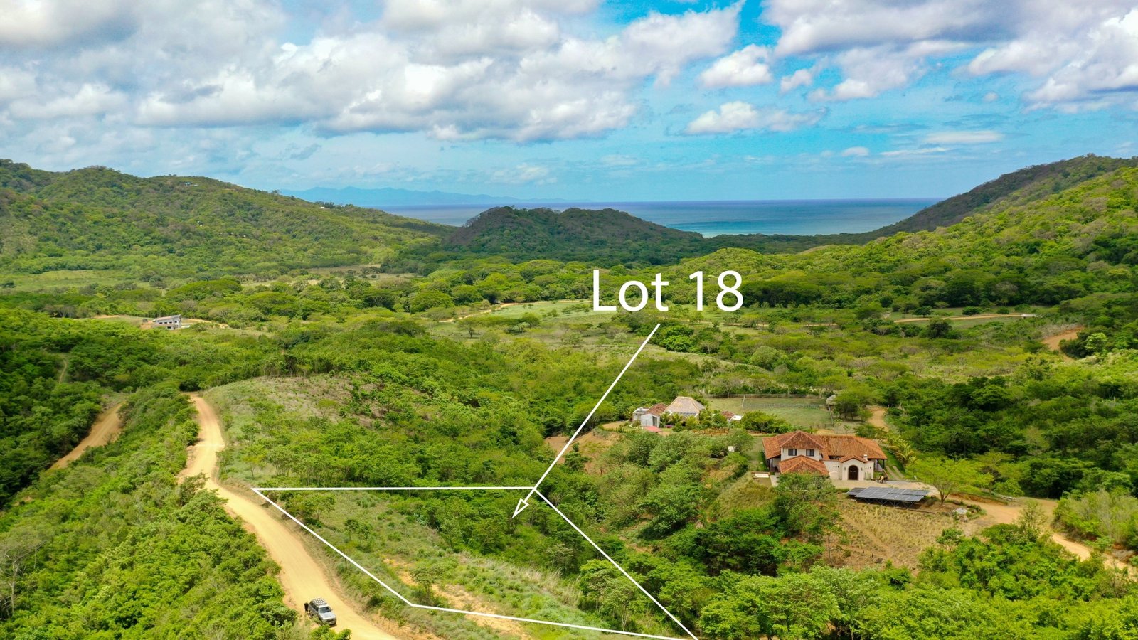 The lot is located up one to the roads in the community, where it is not too steep but has enough elevation that the view from lot 18 includes a view of the valley all the way to the ocean.